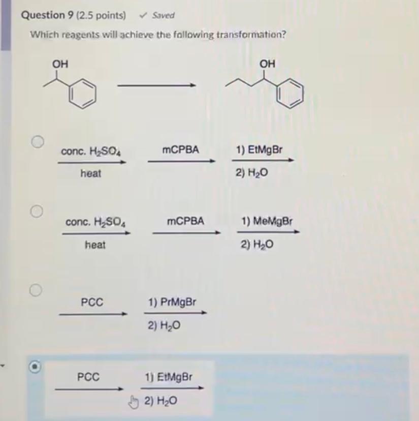 Solved Question 9 2 5 Points Saved Which Reagents Will Chegg Com